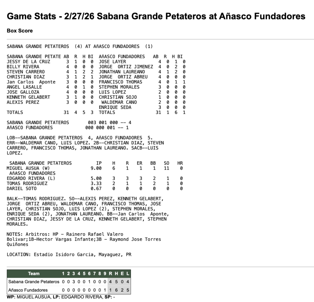 Sabana Grande en Añasco – 27 de febrero