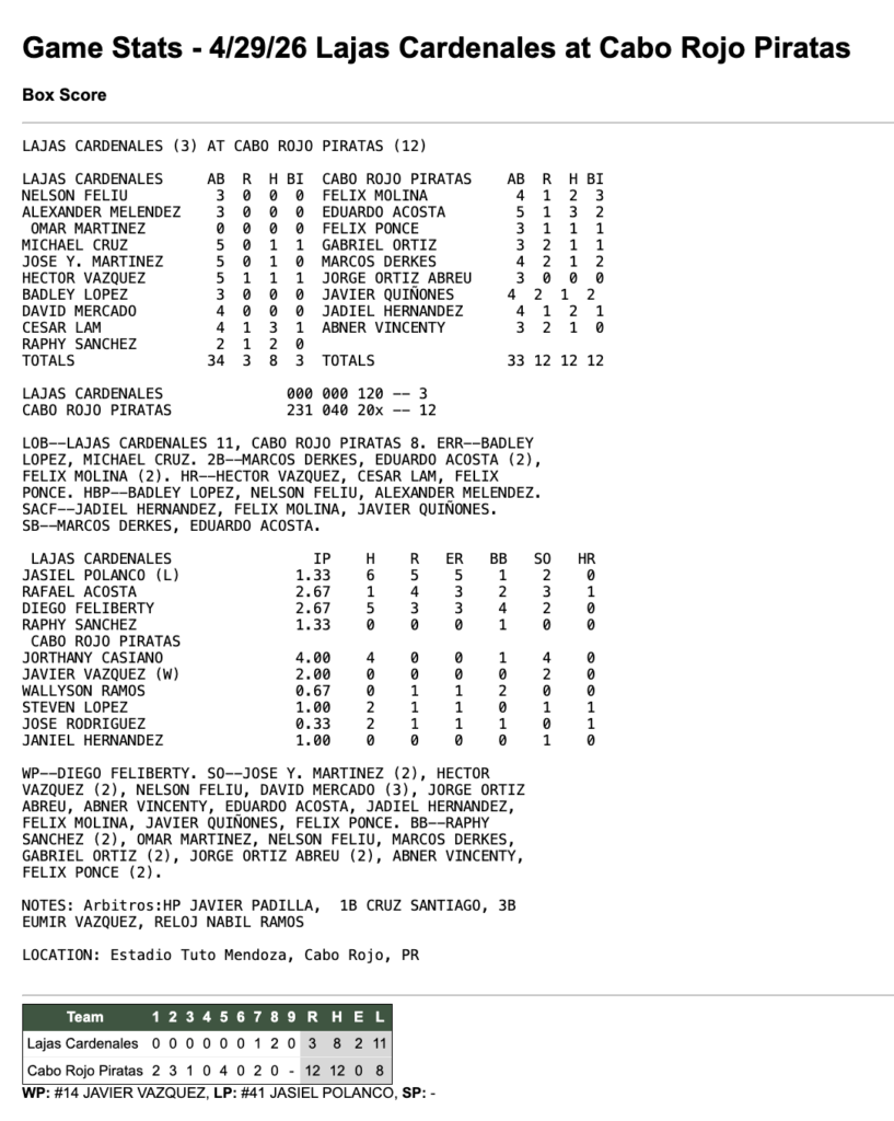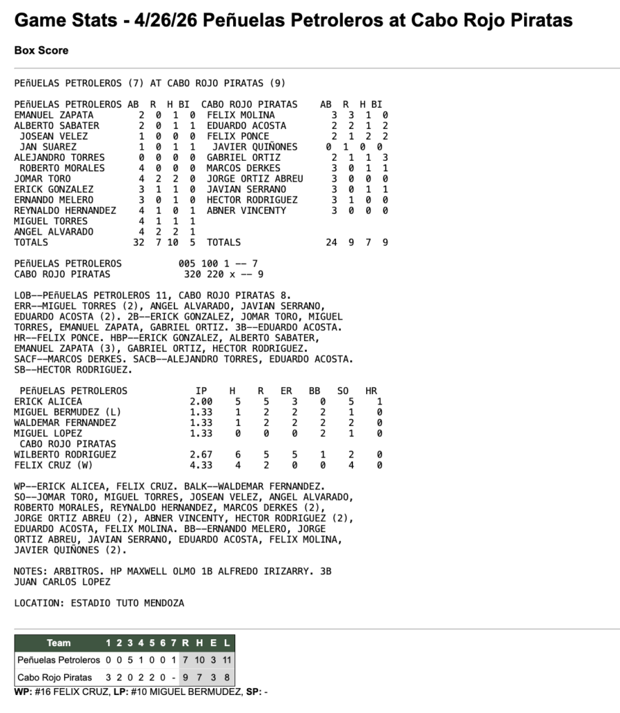 peñuelas en cabo rojo – 26 DE ABRIL (JUEGO 2)