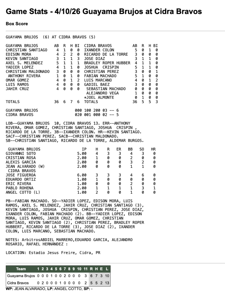 10 de abril de 2026 8:00 pm Beisbol Superior Doble A 2026