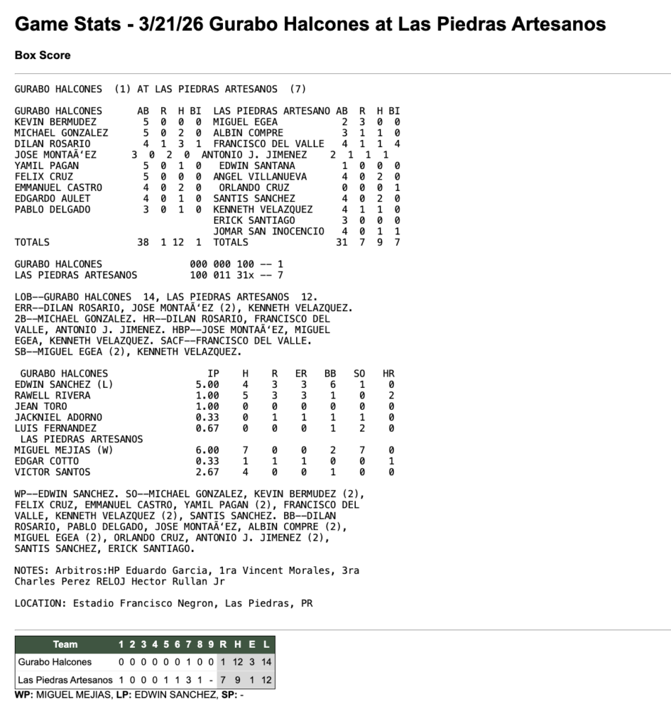 | 21 de marzo de 2026 | 7:30 pm | Beisbol Superior Doble A | 2026 |