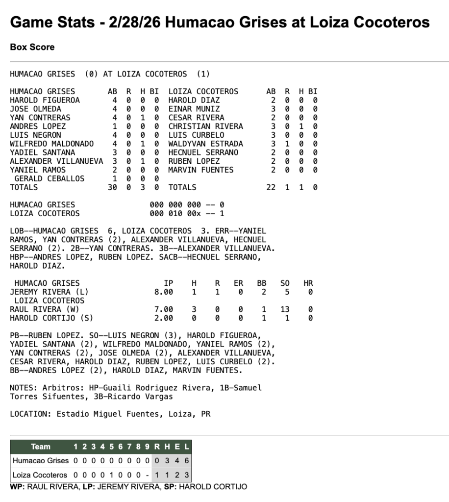 | 28 de febrero de 2026 | 7:30 pm | Beisbol Superior Doble A | 2026 |