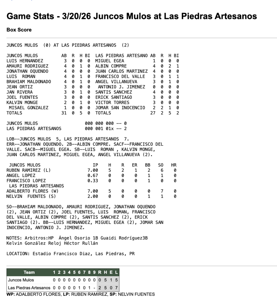 20 de marzo de 2026 8:00 pm Beisbol Superior Doble A 2026