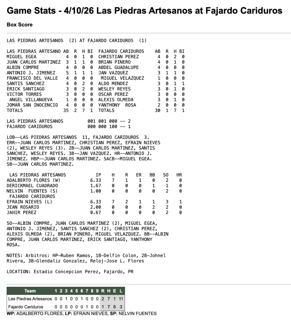 | 10 de abril de 2026 | 8:00 pm | Beisbol Superior Doble A | 2026 |