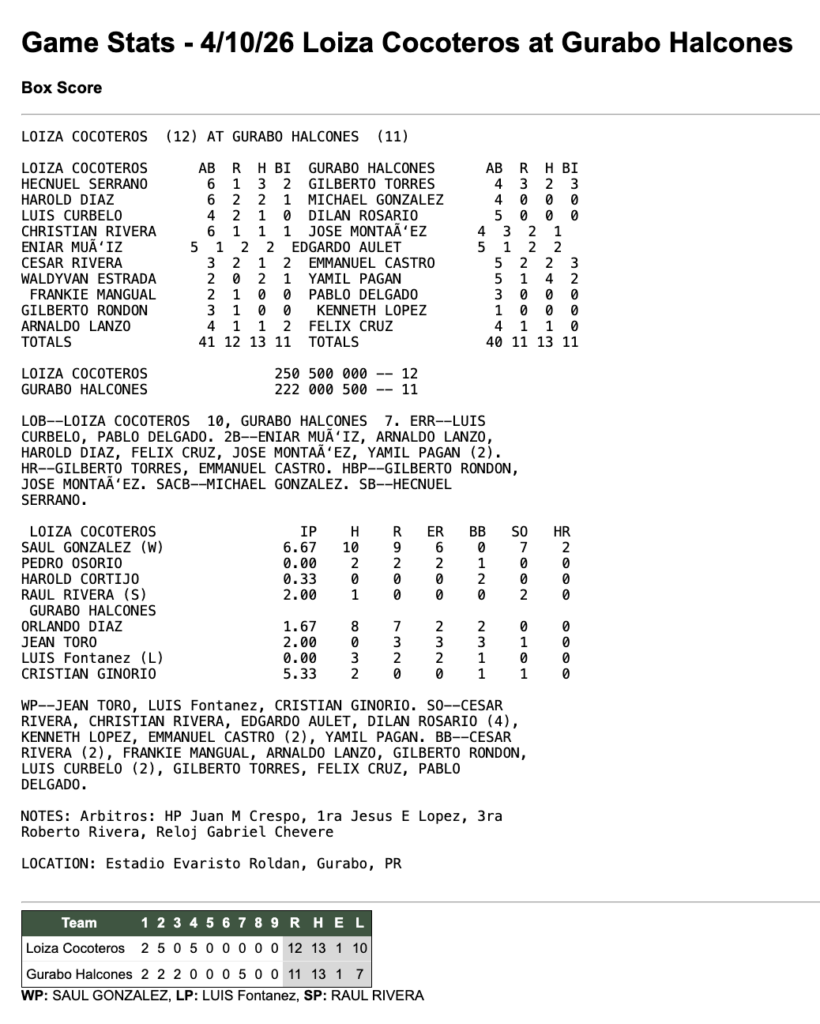 LoízaGurabo 10 de abril de 2026