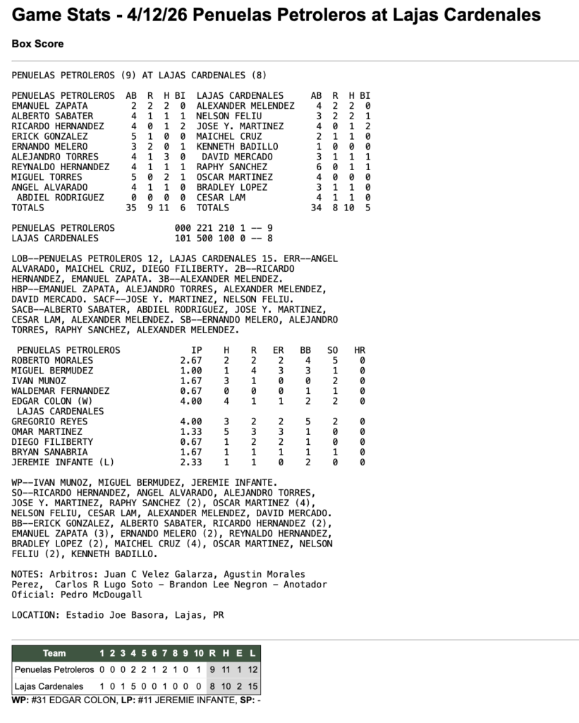 12 de abril de 2026 4:00 pm Beisbol Superior Doble A 2026