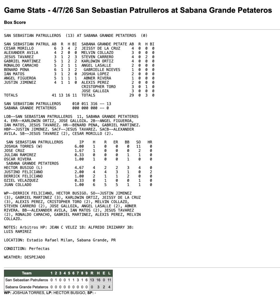 | 7 de abril de 2026 | 7:30 pm | Beisbol Superior Doble A | 2026 |